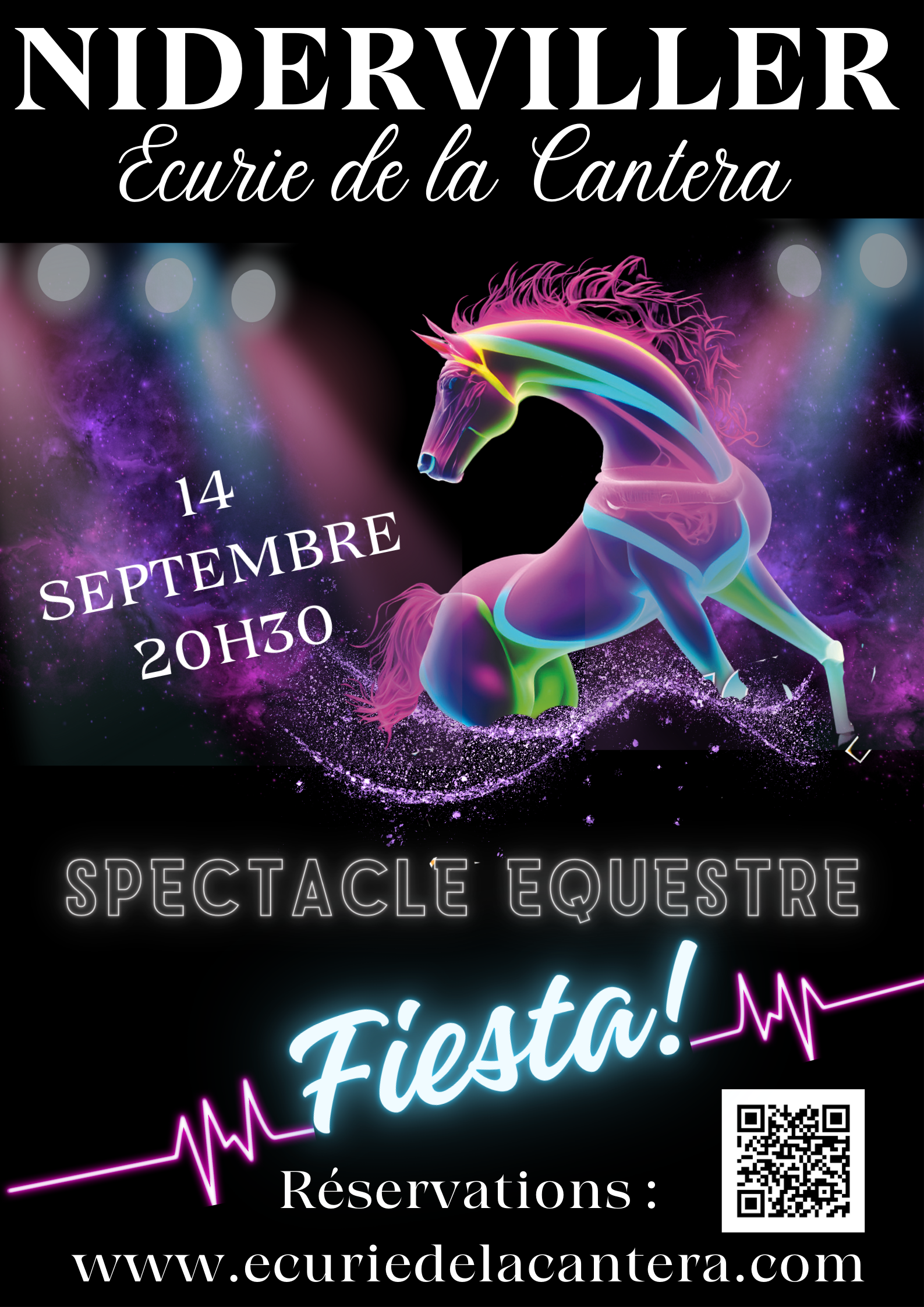 Le centre équestre La Cantera sera heureux de vous accueillir et de vous présenter son tout nouveau spectacle FIESTA. Ouvertures des portes à 19h. Début du spectacle à 20h30. Présentation billet à l’entrée.Merci d’imprimer le billet ou de le présenter sur votre smartphone à l’entrée de l’événement.